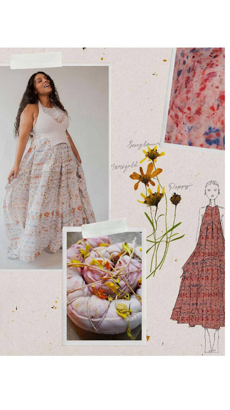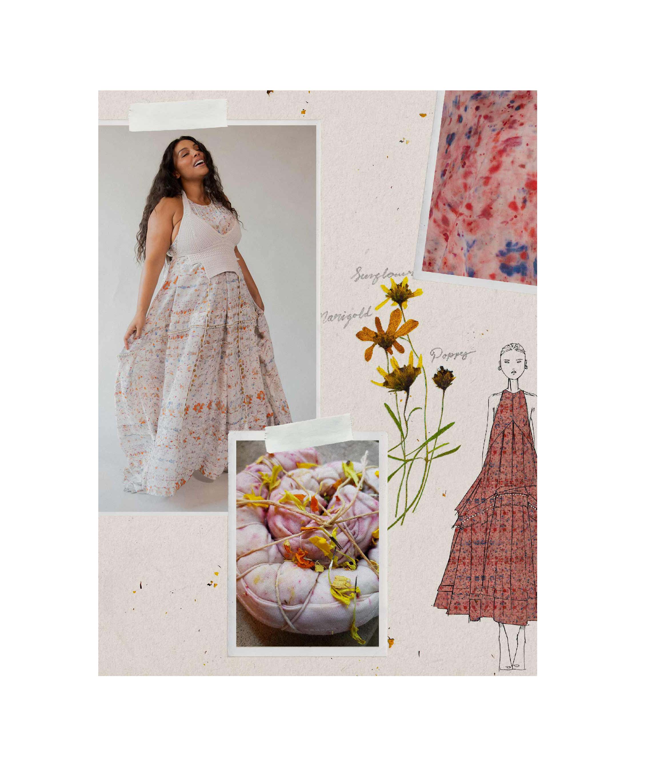 Spring’s one-of-a-kind floral prints take on unique patterns and soft pigmentation from natural elements—from flowers to roots—through a handcrafted, bundle-dyed technique.